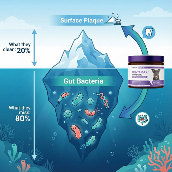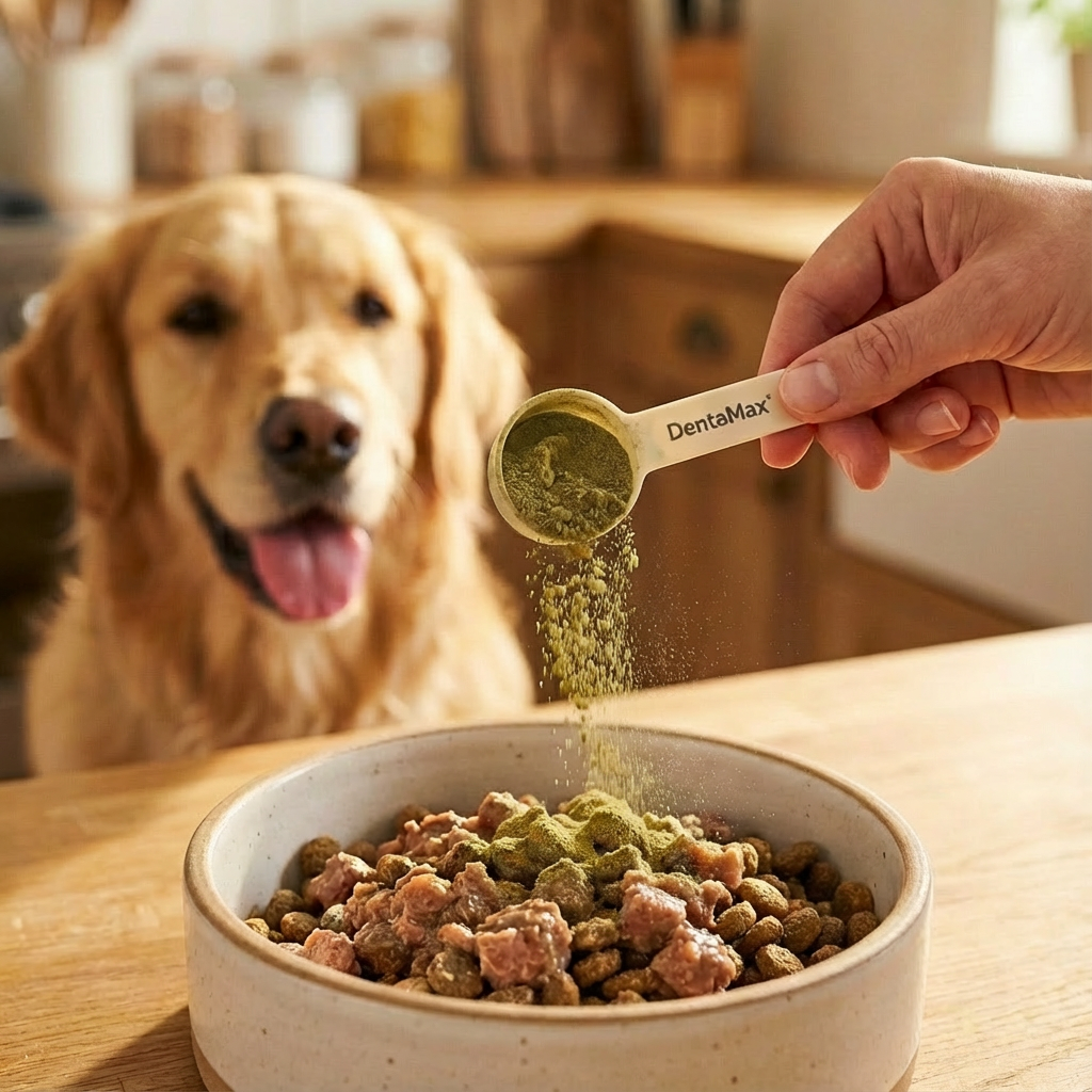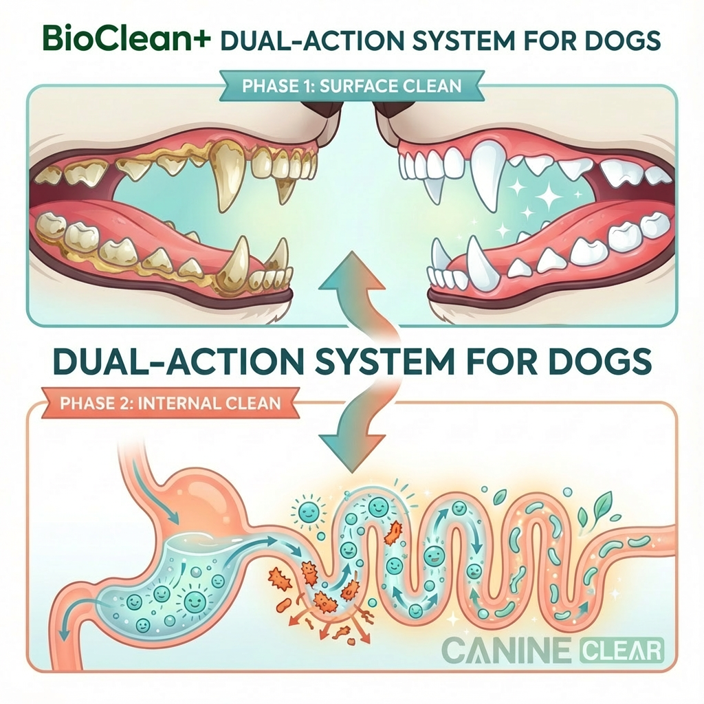 Think of it as a complete reset for your dog's oral ecosystem — teeth, gums, gut, and breath — in one daily scoop.