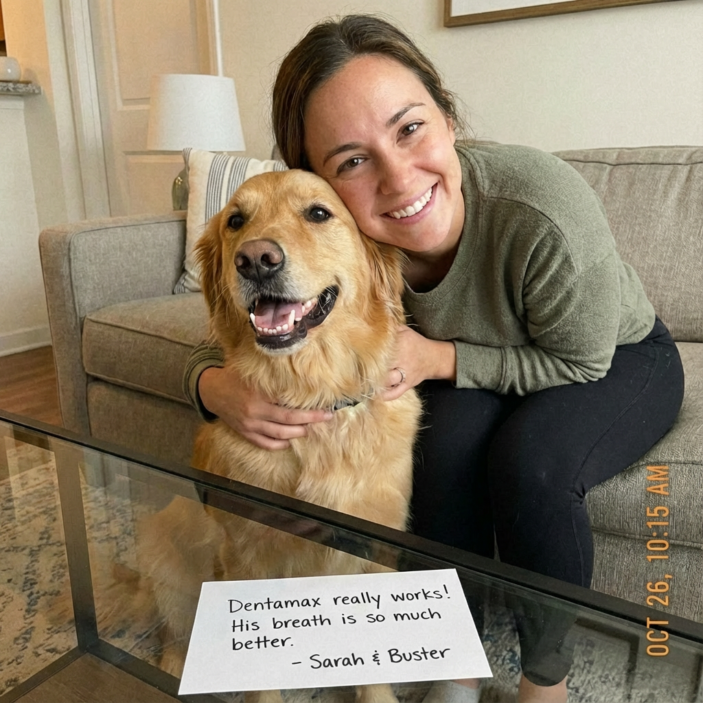 DentaMax works from the inside out — something brushing can't do. Many owners use it as their primary dental care, especially for dogs who won't tolerate brushing.