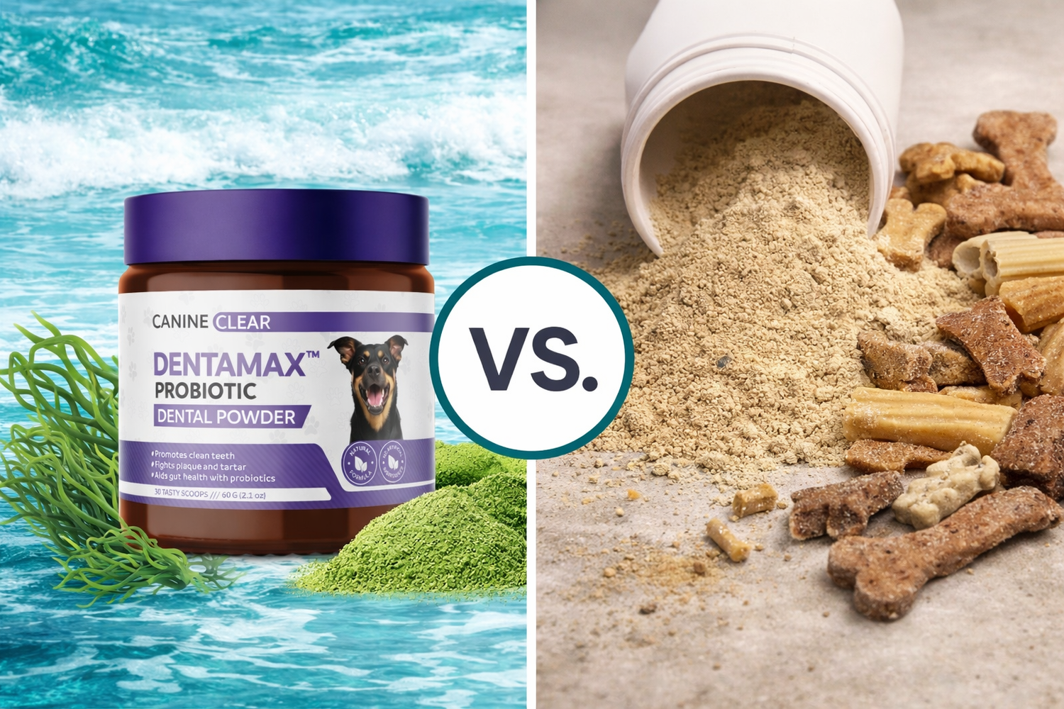 Other powders only clean the surface. DentaMax cleans the surface AND the source. 2,600+ dog owners have made the switch.